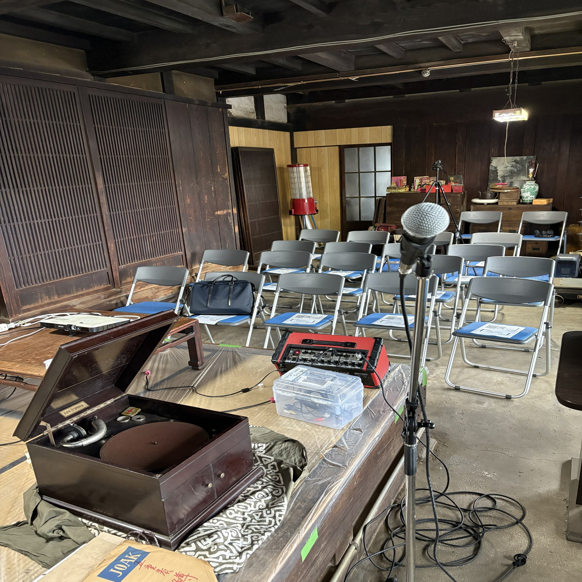 そして最後にご親族がこの日のためにメンテナンスを行い、命を吹き返した蓄音機の登場です。ダイヤルを何度も何度も回し、鉄でできた針をSPレコードの上にゆっくりそっとのせます。